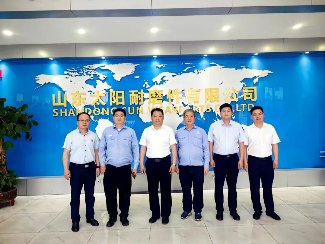 山钢股份张润生总经理一行访问太阳耐磨件2025-06-146月14日,山东钢铁股份有限公司(以下简称山钢)总经理张润生同志一行到访公司,与公司领导就进一步深化合作进行了交流与座谈。 公司董事长向到访的山钢客人介绍了近年来太阳耐磨件的发展情况。他说,太阳耐磨件立
